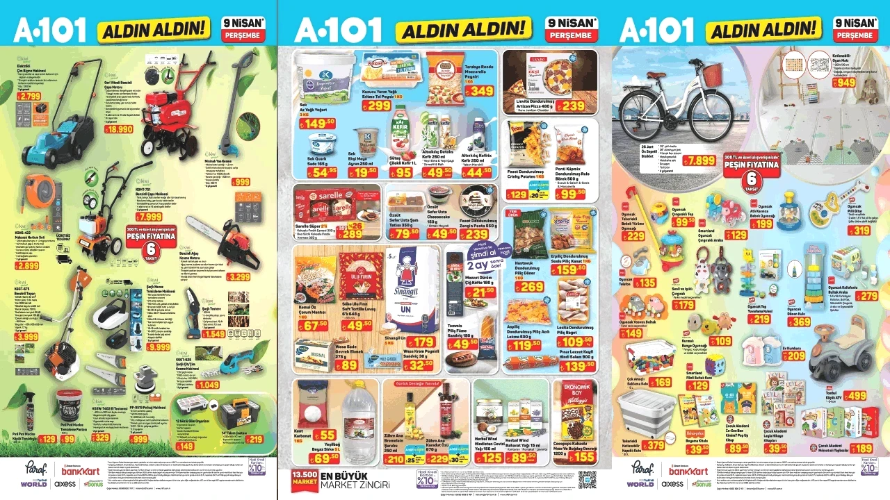 9 Nisan Perşembe A101 indirimli ürünleri hazırlandı. Türkiye'nin en çok ziyaret edilen perakende zincir marketleri arasında yer alan A101'e yeni ürünler geldi. Her perşembe gününe özel katalog hazırlığı yapan A101 markette 9 Nisan Perşembe günü için gıda ve temizlik ürünlerinin yanı sıra elektrikli çim biçme makinesi, halı ve koltuk yıkama makinesi, plastik koltuk ile elektrikli ve benzinli moped duyurusu yapıldı. İşte merak edilen 9 Nisan Perşembe A101 aktüel ürünler kataloğu..