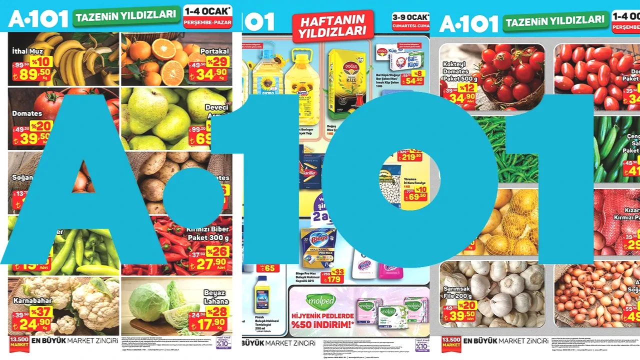 A101’de indirim rüzgârı hız kesmeden sürdü. Market zinciri, 15-18 Ocak 2026 tarihleri arasında geçerli olacak Tazenin Yıldızları aktüel kataloğunu müşterilerin beğenisine sundu. Katalogda özellikle mutfak alışverişinin vazgeçilmezleri olan sebze, meyve ve temel gıda ürünleri öne çıktı.