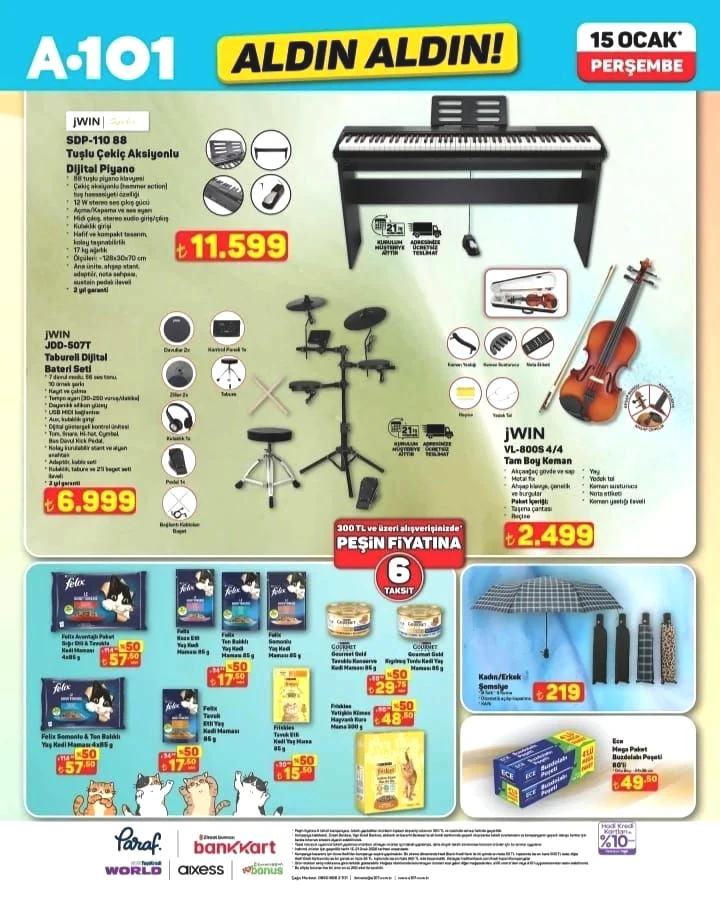 Market zincirlerinin indirim yarışında yeni hafta listesi belli oldu. 15 Ocak Perşembe günü A101 mağazalarında teknolojik ürünlerden müzik aletlerine, temel gıdadan beyaz eşyaya kadar onlarca ürün satışa çıkıyor. İşte A101 15 Ocak Perşembe aktüel ürünler kataloğu...