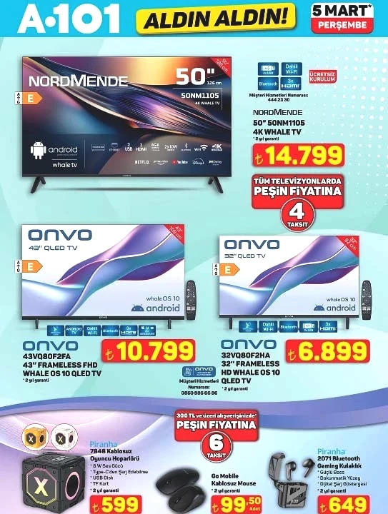 A101’de bu hafta dev kampanya dönemi başlıyor. Mart ayının ilk büyük kataloğunu paylaşan perakende devi; uygun fiyatlı 125 cc motosikletten, evde dikiş-nakış işlerini profesyonelleştirmek isteyenler için overlok makinesine kadar geniş bir yelpaze sunuyor. Ayrıca dev ekranlı 4K Smart TV’ler de cazip taksit seçenekleriyle satışa çıkıyor. İşte haftanın fırsat ürünleri…