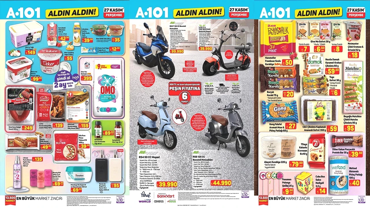 A101’in 26 Mart 2026 aktüel kataloğu yayımlandı ve indirimli ürünler satışa çıktı. Televizyon, motosiklet, beyaz eşya ve küçük ev aletleri gibi birçok kategoride dikkat çeken fiyatlar öne çıkarken, tüketiciler “A101’de bu hafta neler var?” sorusuna cevap arıyor.