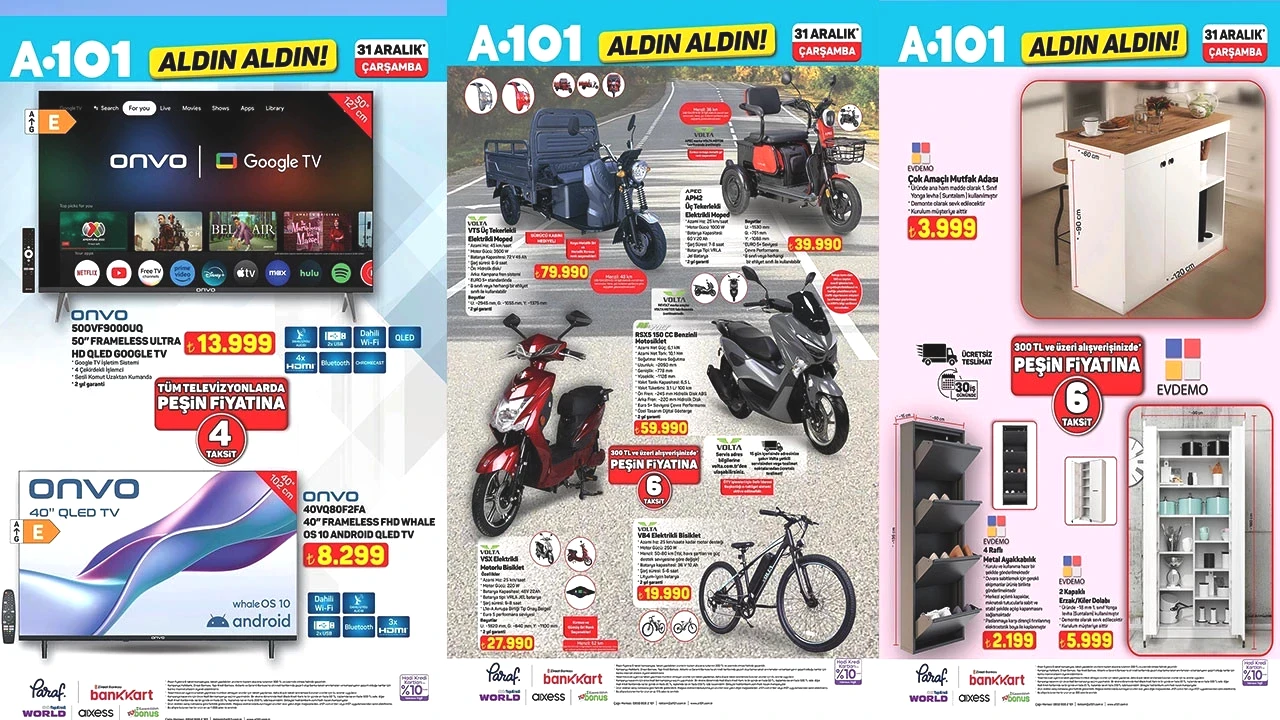 A101 Aldın Aldın aktüel kataloğu yayımlandı. 26 Mart Perşembe A101 mağazalarında satışa çıkacak olan bu ay içerisindeki son katalogda yer alan ürünler vatandaşların yakın takibinde yer almaya devam ediyor. 26 Mart Perşembe A101 Aldın Aldın aktüel kataloğunda yer alan ürünler arasında bu hafta Tost Makinesi, Çok Fonksiyonlu Araç Süpürgesi, Yağ Ölçer Fonksiyonlu Akıllı Tartı, 150 cc Benzinli Motosiklet, Geri Vitesli Benzinli Çapa Motoru, Elektrikli Üfleyici, Otomatik Budama Makası ve daha birçok ürün yer alıyor.